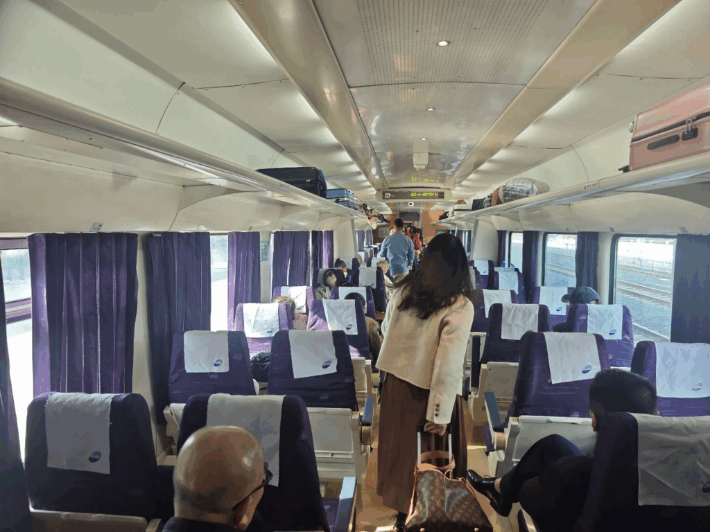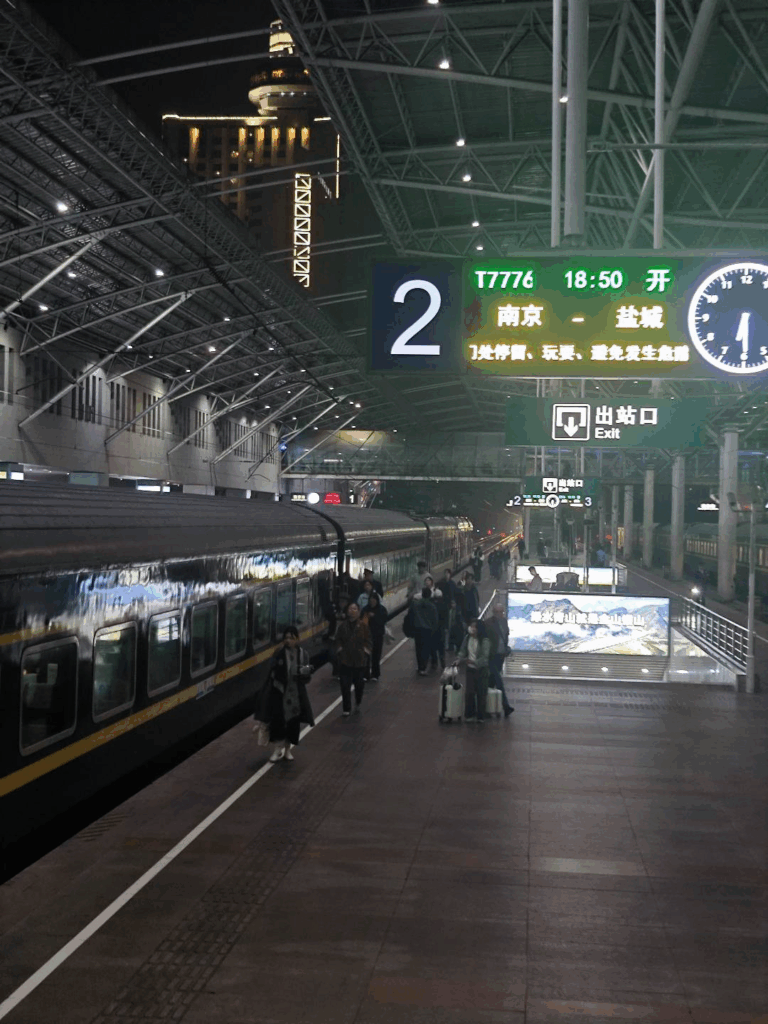 早晨9时,坐T7778次车前往南京。比起此前所坐硬座绿皮,这列车环境颇好,有动车之风。